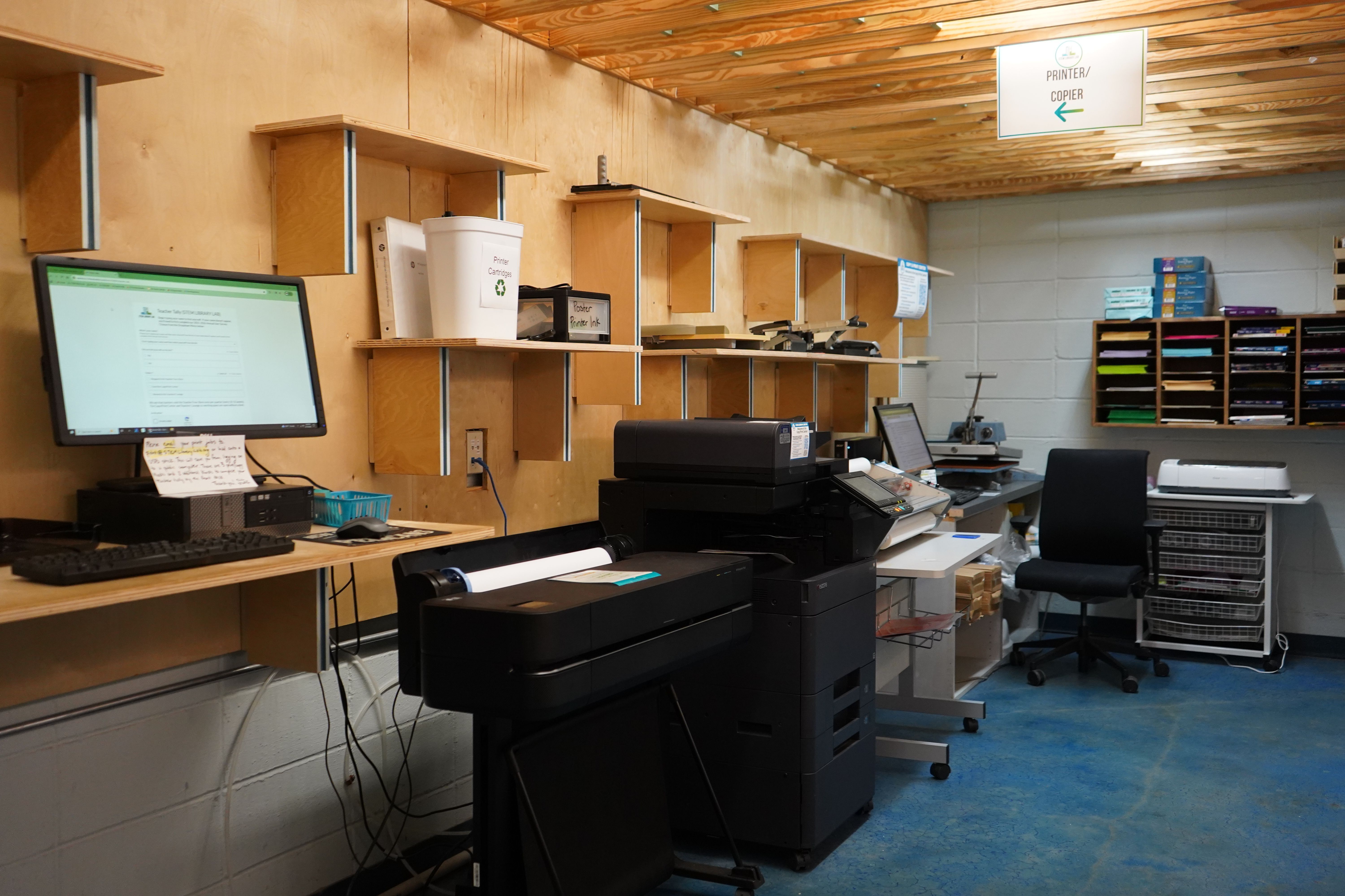 Our equipment includes a poster printer, laser printer/copier, laminator, and even a Cricut machine, giving you everything you need to create unique classroom materials. Whether you’re preparing for the school year or updating your classroom, the Copy/Print Center is here to save you time and money.